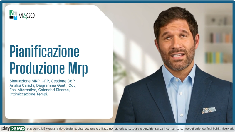 Grazie a questo modulo, le aziende possono: generare piani di produzione, monitorare le scorte, gestire gli ordini di produzione, tracciare l’intero ciclo produttivo, pianificare il riordino dei materiali, coordinare il conto lavoro, consuntivare la produzione, visualizzare le fasi di produzione in tempo reale, gestire distinte base, integrare gli ordini clienti manualmente, generare automaticamente documenti di lavorazione.